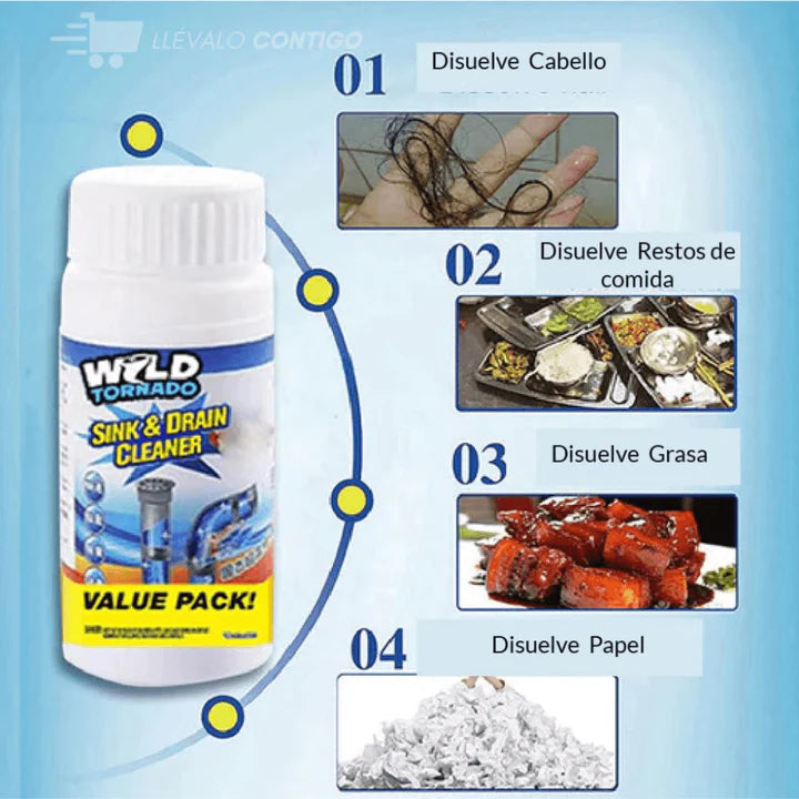 Sí, disuelve grasa, cabello, restos de jabón y comida fácilmente.